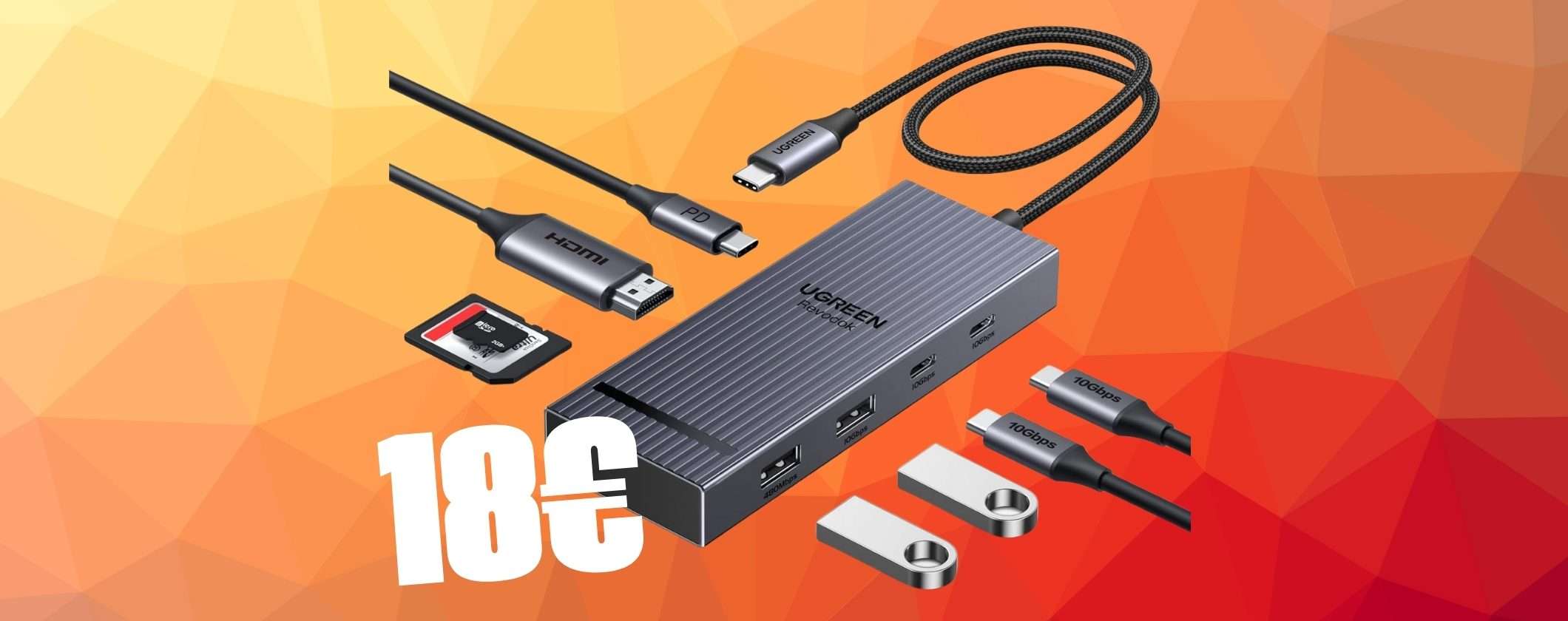 Se le porte del tuo computer non sono mai abbastanza e vorresti qualcosa per aumentarle senza dover spendere chissà quanto dai un’occhiata a questa offerta. Se vai subito su Amazon puoi mettere nel tuo carrello questo Hub 8 in 1 a soli 18,99 euro, invece che 29,99 euro.