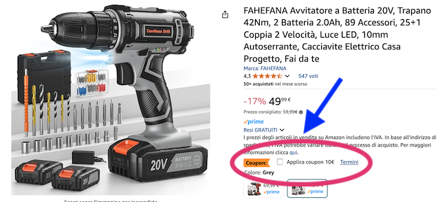 Divertiti a fare shopping a prezzo piccolissimo su Amazon, grazie a questi coupon: sconti troppo golosi per ignorarli, dai un’occhiata tu stesso! Abbiamo scelto le più interessanti opportunità a partire da 10€ circa appena. Ricordati di attivare le offerte in pagina, come mostrato in questa immagina, per ottenere il massimo sconto!