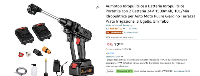 Approfitta ora di questa occasione sensazionale e porta a casa il kit con 2 batterie e accessori a metà prezzo. Per ottenere lo sconto del 50%, basta mettere il prodotto nel carrello e – prima di completare l’ordine – inserisci il codice ” 7WICX8LE “. Spedizioni rapide e senza costi aggiuntivi, grazie ai servizi Prime, ma disponibilità limitatissima.