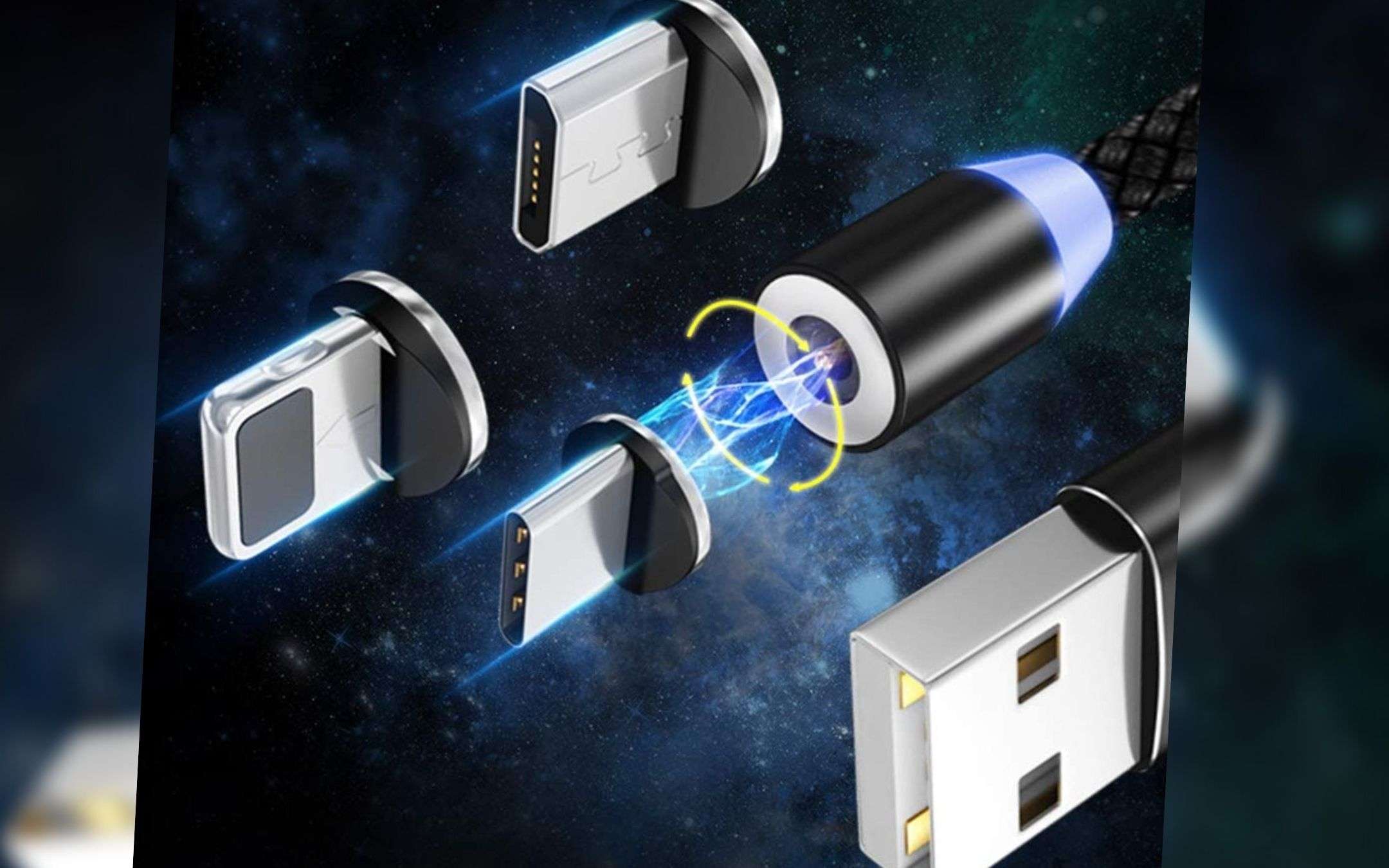 Dov’è la genialata? Tipo anticipato, un solo cavo, quattro adattatori, che cambi sfruttando una sistema magnetico potentissimo. In confezione ti arrivano le diverse uscite (USB C, microUSB, tipo C e Lightning) e tu non dovrai far altro che montarle all’occorrenza, utilizzando i magneti.