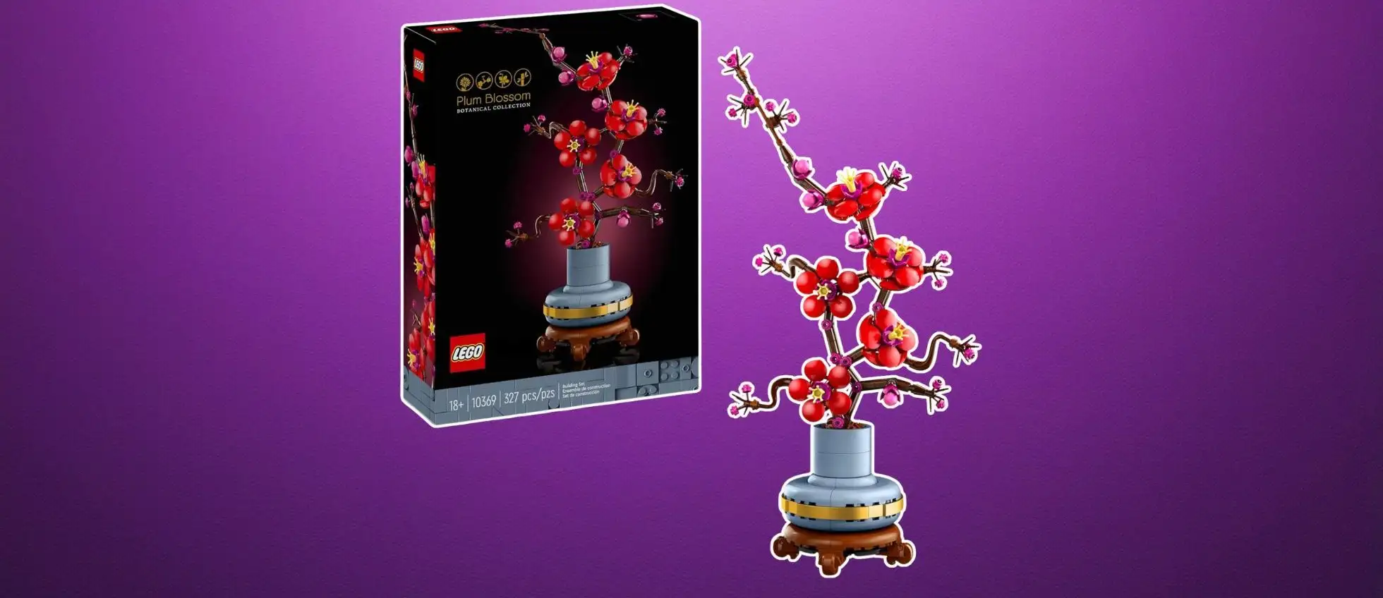 Il kit riproduce l’albicocco in fiore, un albero che tradizionalmente viene raffigurato nell’arte asiatica. Si presenta con un elegante stelo legnoso e una chioma ricca di fiori vivaci nelle tonalità del rosso e magenta. Il set include, come detto, anche un raffinato vaso blu pastello in cui inserire la pianta: anch’esso da costruire, è costituito da una fascia decorativa dorata che poggia su una base effetto legno a doghe.