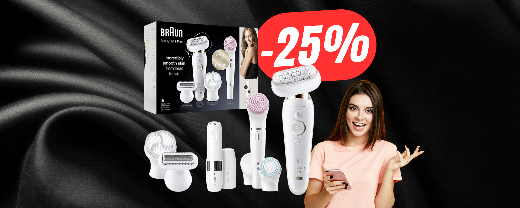 L’estate è arrivata all’improvviso e, come spesso accade, non sempre siamo perfettamente preparate per le giornate al mare. Tra bikini da scovare nell’armadio e creme solari da applicare, a volte ci dimentichiamo di un dettaglio fondamentale: la depilazione. Ed è proprio qui che entra in gioco il kit Braun Silk-épil 9 Flex (9105) che, grazie all’epilatore e ben 6 accessori, ti farà dormire sempre sogni tranquilli! E il suo prezzo passa dai classici 203,82€ ad appena 152,90€ grazie allo sconto Amazon!