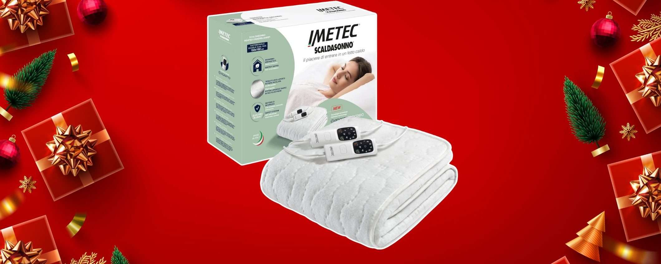 Il regalo di Natale per eccellenza per le coppie: lo Scaldasonno Matrimoniale del marchio Imetec. Dotato di tecnologia Adapto che scalda velocemente e mantiene la temperatura costante adattandosi a quella del corpo, oltre a un doppio comando che permette di scegliere se tenerlo acceso per intero o solo per una metà, su Amazon lo acquisti a soli 119,99 euro invece di 184,99. Un’occasione da non perdere.