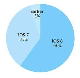 Se tra settembre e ottobre la crescita di iOS 8 era stata piuttosto ridotta e pari ad appena un punto percentuale (il 5 ottobre iOS 8 era presente "solamente" sul 47% dei device Apple), nel corso del mese di novembre si è registrata un’accelerata (+4% per un totale di 3 iPhone e iPad su 5 aggiornati all’ultima release), trend confermato dai dati pubblicati recentemente dall’azienda di Cupertino, secondo cui oggi il 63% di smartphone e tablet Apple utilizza la più recente versione di iOS.
