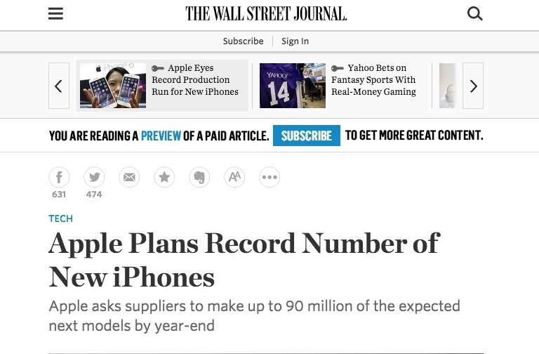 Le informazioni sugli ordini di produzione provengono direttamente da fornitori di Apple (Apple – fa sapere il Wall Street Journal – potrebbe modificare gli ordini in base alla domanda effettiva). Hon Hai Precision Industry, noto anche come Foxconn (che è stato a lungo assemblatore principale di Apple) sta reclutando operai alla sua principale base di produzione iPhone a Zhengzhou (Cina centro-settentrionale), anticipando la produzione di massa dei nuovi telefoni già dal mese prossimo.