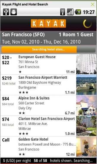 Kayak è un’applicazione davvero completa ed esteticamente piacevole per l’organizzazione e la gestione dei propri viaggi, il tutto a portata di dito. Tramite Kayak, disponibile sia in versione free con banner pubblicitari che a pagamento, è possibile fare una ricerca personalizzata e filtrata per scali, date ed orari dei voli più economici, verificarne lo stato in versione testo e mappa, trovare gli alberghi più vicini tramite geolocalizzazione o quelli più convenienti nella località in cui si desidera pernottare, prenotare un’auto presso le principali compagnie di noleggio.