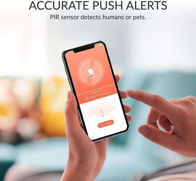 Si continua con i sensori di movimento dotati di sensore PIR in grado di rilevare persone o animali domestici. Anche questi possono essere montati fino a 20 metri di distanza dalla stazione base e comunicano eventuali movimenti tramite l’applicazione Kami con apposite notifiche push.