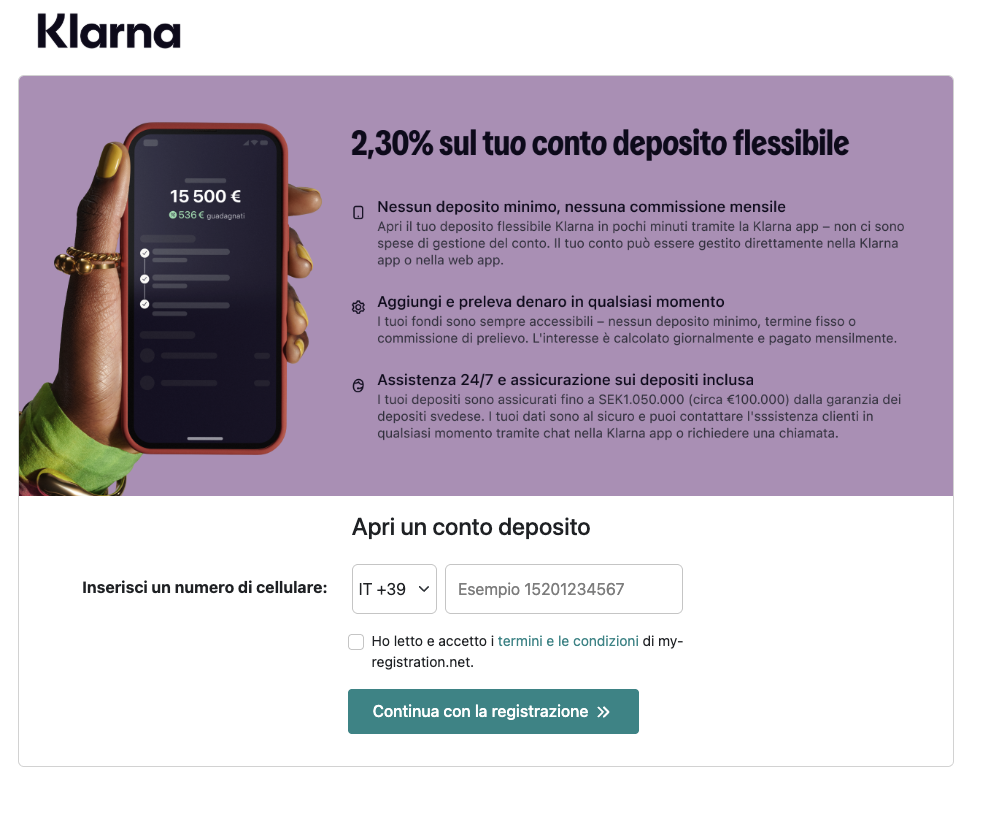 La società fintech svedese Klarna è riconosciuta universalmente per offrire la possibilità di pagare un prodotto in tre rate senza interessi. D’ora in avanti, però, tante persone impareranno a conoscerla anche per la sua nuova soluzione finanziaria: il conto deposito flessibile, attraverso cui è possibile guadagnare fino al 2,30% di interesse sui propri risparmi.