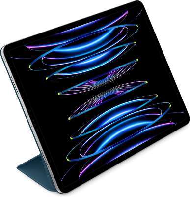 La Smart Folio è una custodia per iPad Pro da 12,9 pollici di sesta generazione sottile e leggera pensata per proteggere il tablet da entrambi i lati. Finemente ricercata e dal dettaglio da non sottovalutare, come del resto per tutti i prodotti Apple, riattiva in automatico il display quando lo apri e lo mette in standby quando la chiudi.