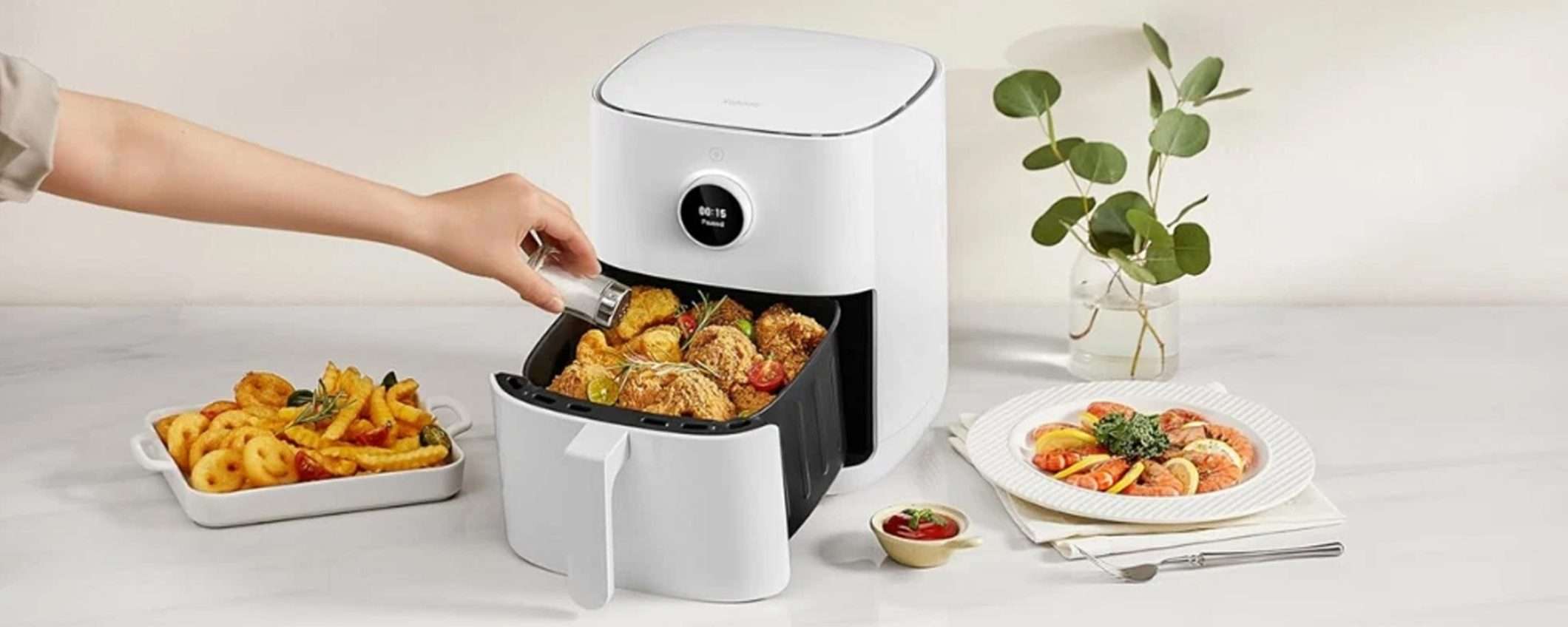 Nella tua casa domotica manca un elettrodomestico smart? Rimedia subito con la friggitrice ad aria Xiaomi da 4,5 litri: dotata di controllo Wi-Fi, è in offerta al prezzo scontato di 49,99 euro, con un risparmio del 33% rispetto al prezzo di listino di 74,99 euro.