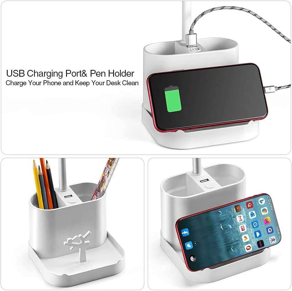 Non è alimentata da cavi ma da una batteria da 2400 mAh che dura 53 ore a bassa luminosità, 30 ore a media luminosità e 4 ore a piena potenza. Appoggia il tuo smartphone sul pratico supporto e caricalo nello stesso tempo grazie alla porta USB posiziona alla base del collo della lampada. Infine, metti tutto nel portapenne ed evita inutili disordini.