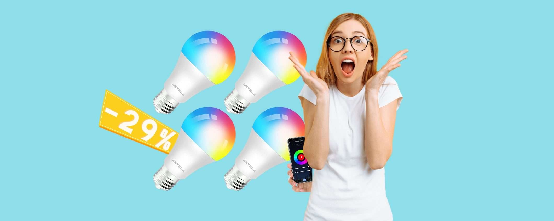 Oggi se fai veloce puoi approfittare di questa super offerta che ritorna prepotentemente su Amazon con cui puoi fare diventare smart la tua casa. Metti subito nel tuo carrello4 lampadine WiFi Antela a soli 24,98 euro, invece che 34,99 euro.