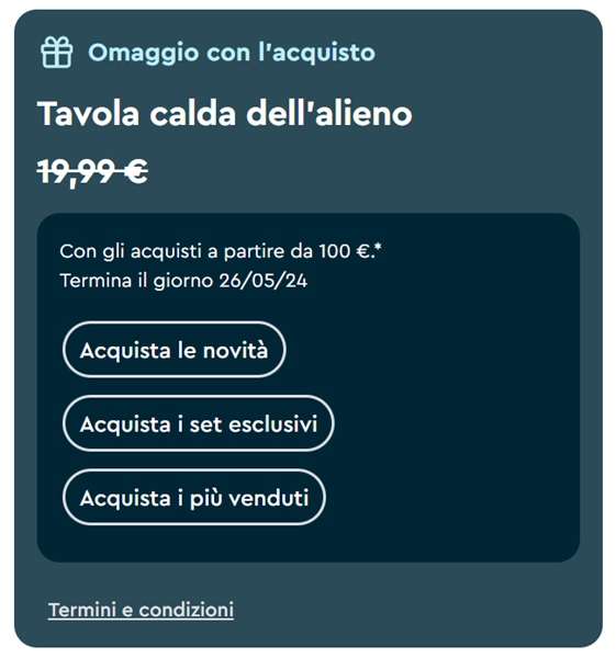 Tavola calda dell’alieno LEGO in omaggio con un acquisto di almeno 100 euro