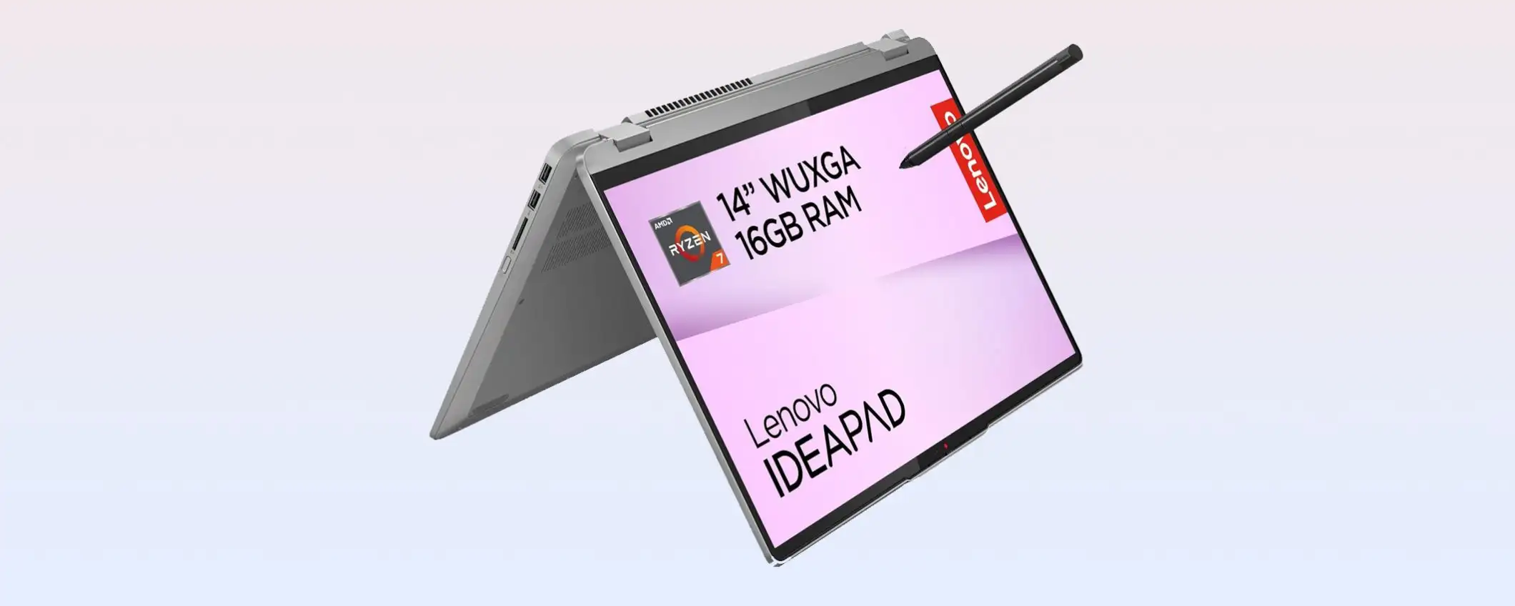 Ad alimentare il convertibile Lenovo ci pensa il processore AMD Ryzen 7 7730U che offre prestazioni veloci, in ogni attività: dal multitasking al gaming, fino alla creazione di contenuti. Il dispositivo integra anche 16 GB di RAM e un’unità SSD da 512 GB, per il massimo della reattività.