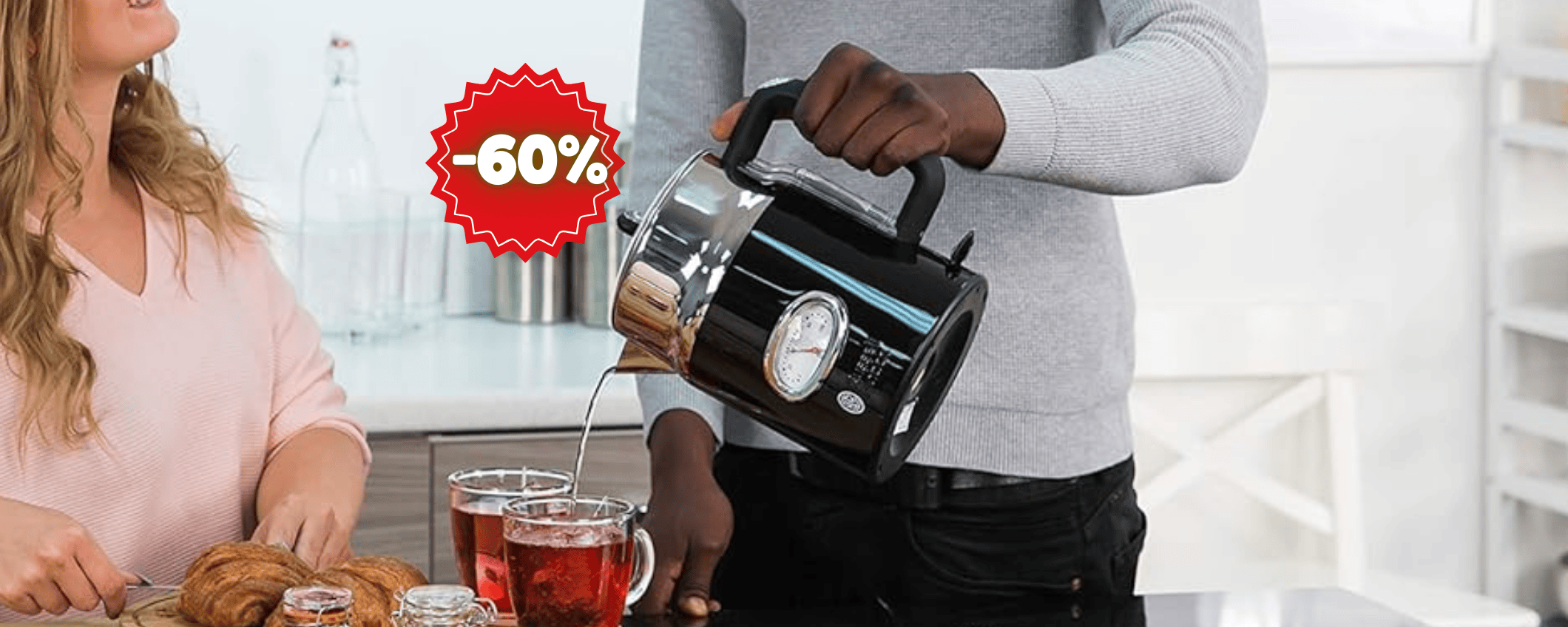 In queste giornate in cui il freddo si sta facendo sentire in modo prepotente, cogli l’occasione di scaldarti dall’interno. Una bella tazza di tè fumante è quel che ci vuole oppure cena con del ramen e soddisfa anche il tuo stomaco! Invece di aspettare davanti al fornello, scegli il bollitore elettrico di Russell Hobbs e abbrevia i tempi. Bello e con un design vintage ma un’anima tutta moderna. Portalo a casa a prezzo irrisorio: scontato del 60% su Amazon, lo fai tuo a soli 31,91 €.