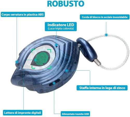 Un sistema di sicurezza eccezionale questo piccolo lucchetto che sblocchi con la tua impronta digitale. E’ praticamente geniale se pensi che solo tu lo puoi aprire e non rischi neanche di perdere le chiavi! Lo metti dove vuoi e tac: è sempre pronto per regalarti sicurezza.