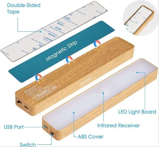 La luce calda, insieme alla finitura effetto legno, le rende perfette per illuminare in modo deciso, ma allo stesso tempo dolce e rilassante. Sono perfette per i pensili della cucina, per fare luce in corridoio di notte e anche – ad esempio – per l’armadio. La finitura effetto legno le rende bellissime da vedere, assolutamente non anonime come la maggior parte degli altri modelli in commercio.