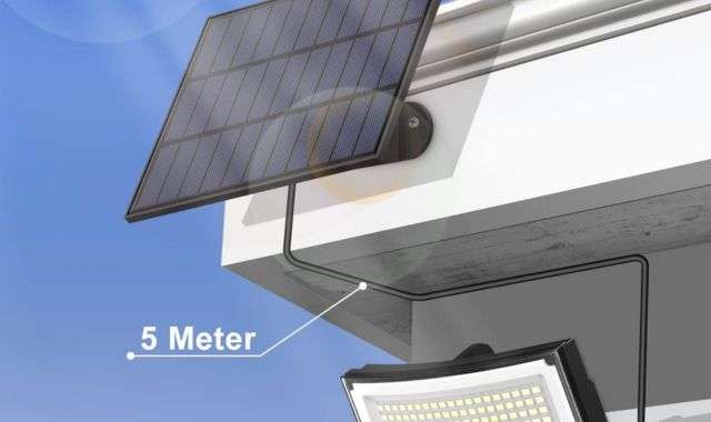 Questa luce solare è composta da due parti: il pannello solare e il corpo illuminante. La loro connessione avviene tramite un cavo di 5 metri, che garantisce la massima carica del dispositivo. Con questa soluzione intelligente, puoi posizionare il pannello solare in un punto soleggiato e collocare il corpo illuminante dove desideri avere la luce. È un modo pratico e flessibile per illuminare sia le aree esterne che quelle interne.