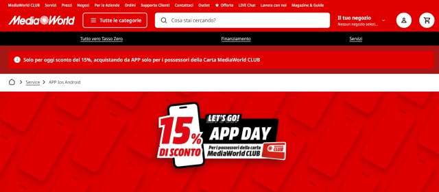 A sorpresa MediaWorld ha lanciato la promo Let’s Go! App Day, valida solo per oggi: tutti i possessori della carta MediaWorld Club che acquisteranno da app, riceveranno un extra sconto immediato del 15%.