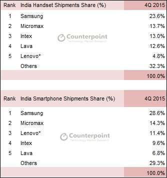 Nel quarto trimestre del 2015 le vendite di smartphone in India sono cresciuti del 15% su base annua, con un incremento complessivo del 23%, quantificabili in oltre 100 milioni di unità vendute.