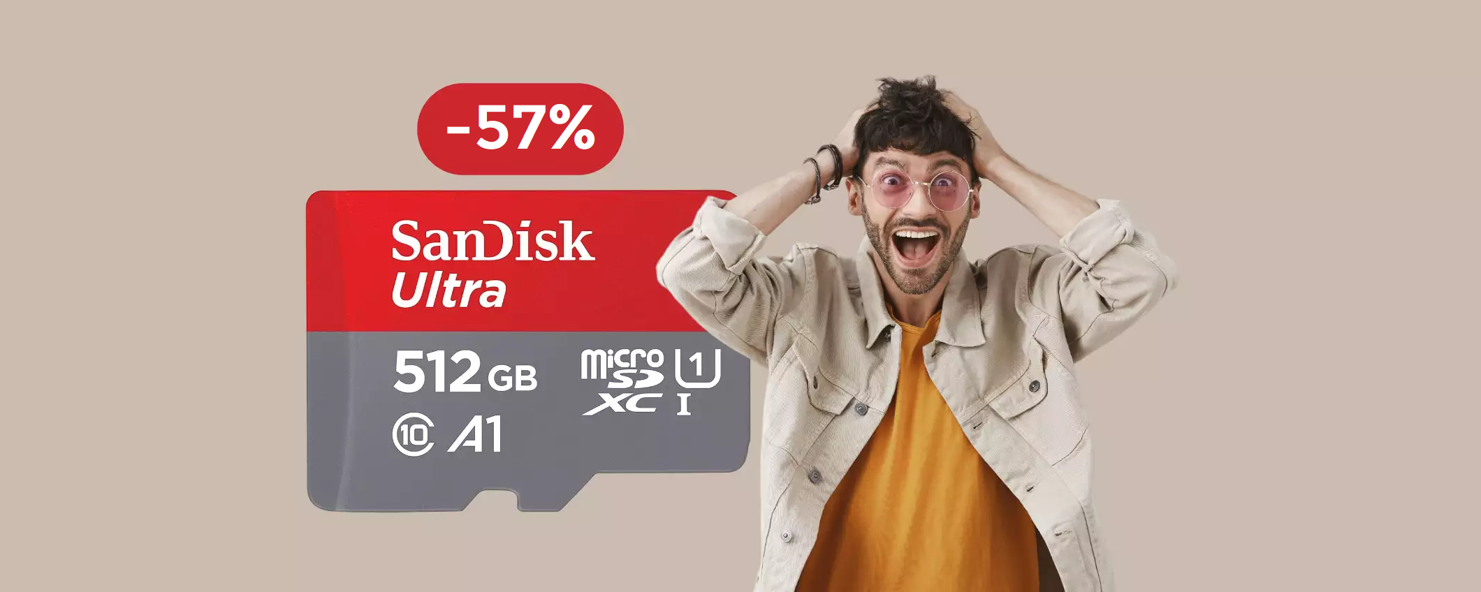 Non perdere questa occasione, le unità disponibili sono limitate. Metti nel carrello la microSD SanDisk Ultra da 512GB: sarà tua a meno della metà del prezzo iniziale ed arriverà a casa con consegna rapida e gratuita.