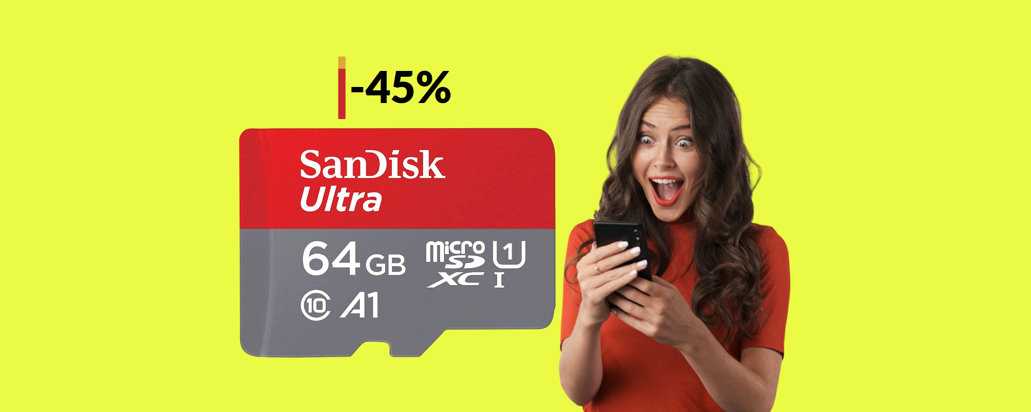 Un’opportunità da cogliere al volo, prima che la promozione termini: fai il tuo ordine su Amazon e, grazie ad uno sconto pazzesco del 45%, la microSD sarà tua con appena 10 euro invece di 18 euro.
