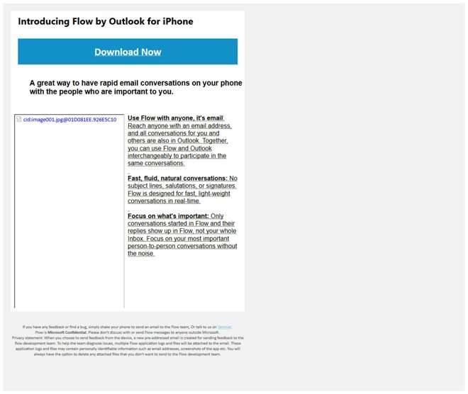 Microsoft vuole rivoluzionare il modo di gestire le email sui dispositivi mobili. Pare infatti che abbia preparato un nuovo software per svolgere questa operazione in maniera molto rapida e leggera: il client si chiamerebbe “Flow by Outlook” ed è stato scoperto da un utente di Twitter – tale WalkingCat  – su una pagina nascosta nel sito ufficiale di Microsoft.