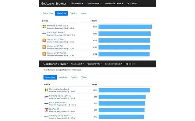 Ovviamente, la maggior parte dei dispositivi con SD888+, se non tutti, supererà il Microsoft Surface Duo 2 in termini di punteggi Geekbench e di prestazioni. Bisogna considerare dunque che questo elenco è sì veritiero… ma non definitivo.
