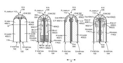 Quanto al design, l’ultimo brevetto ne conferma la natura pieghevole. Non si tratterà di pannelli affiancati e collegati tramite una cerniera. Sembra che Microsoft si affiderà ad un pannello flessibile, con chiusura verso l’interno. Dai disegni del brevetto, il concept si potrebbe affiancare al classico portafogli maschile. Certamente, l’adozione di un solo display semplifica molto la produttività, eliminando l’interruzione nei punti di collegamento del pannello.
