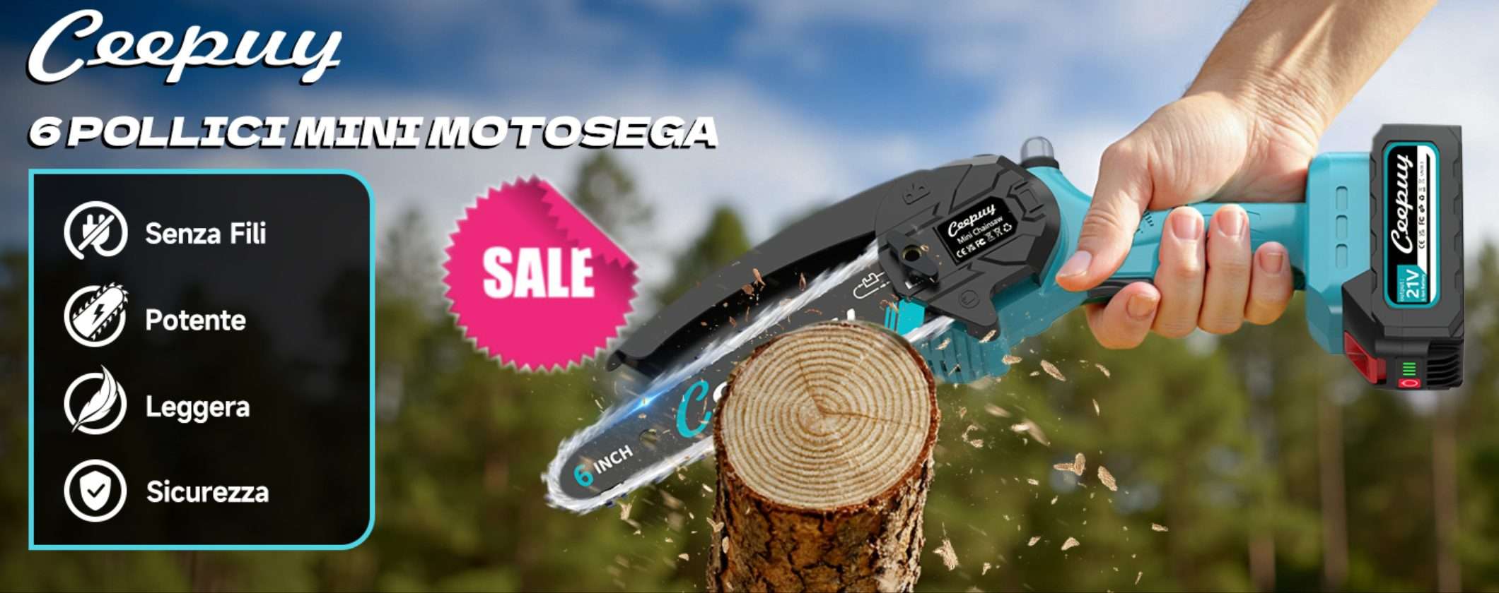 Su Amazon è in offerta una fantastica Mini Motosega a Batteria. Portatile e potente, è la scelta perfetta per chi cerca tutta la forza necessaria per tagliare rami e tronchi in maniera facile e versatile. Oggi è in offerta a meno di 50 euro su Amazon. Acquistala adesso attivando il coupon disponibile sulla pagina! Ordinandola ora ti arriverà 3 giorni prima di Natale.