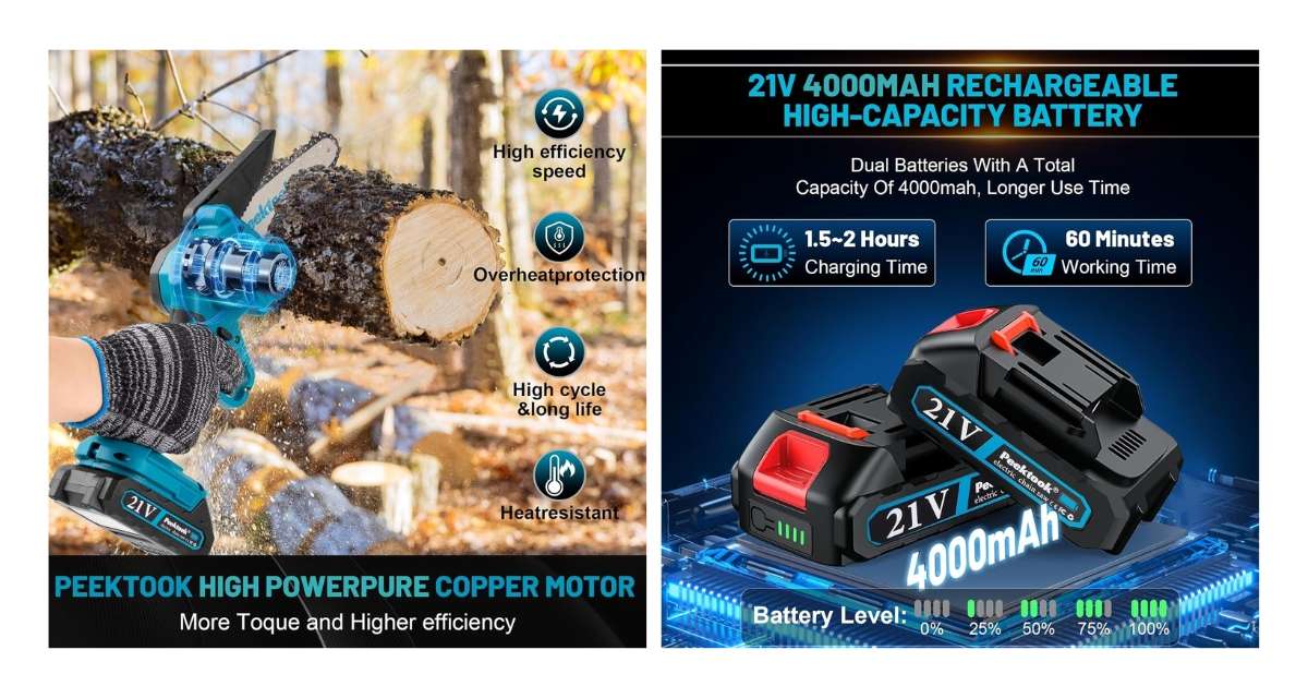 Anche se non sei un esperto giardiniere con questa mini motosega elettrica non avrai nessun tipo di problema. Ha un design estremamente compatto e leggero che ti permette di usarla a una sola mano. Ed è molto semplice da utilizzare. Gode di un’impugnatura maneggevole e antiscivolo ed essendo a batteria non avrai nessun impiccio e potrai usarla ovunque.