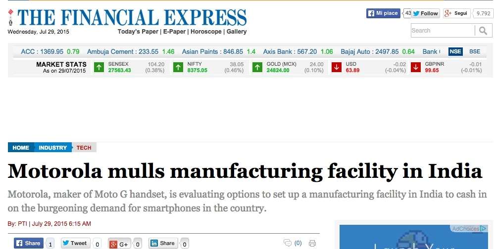 Motorola (che ha fabbriche in Cina e in America latina e, fino a qualche tempo fa, un impianto anche a Chennai) andrebbe ad aggiungersi al guppetto di costruttori stranieri di smartphone che hanno optato ultimamente per il "made in India", come ad esempio Xiaomi, spinti dall'iniziativa del governo soprannominata 'Make in India' che favorisce l'ingresso di OEM internazionali su territorio indiano.