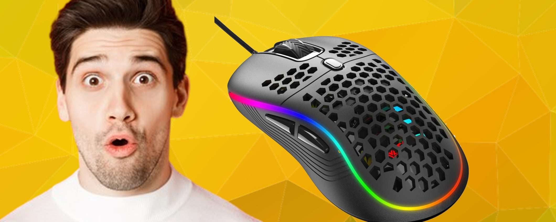 Tuttavia, per poter acquistare questo mouse ottimo al prezzo così basso dovrai affrettarti e approfittare dello sconto del 50% applicabile tramite coupon, disponibile su Amazon. Perfetto sotto ogni aspetto, questo dispositivo di puntamento progettato appositamente per le tue partite di gaming, è caratterizzato da un design ergonomico RGB fino a 7200 DPI (regolabile dall’utente 800/1200/1600/2400/7200 DPI).