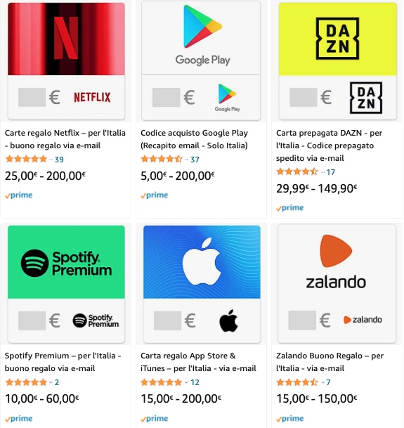 - Zalando (da 15€ a 150€);