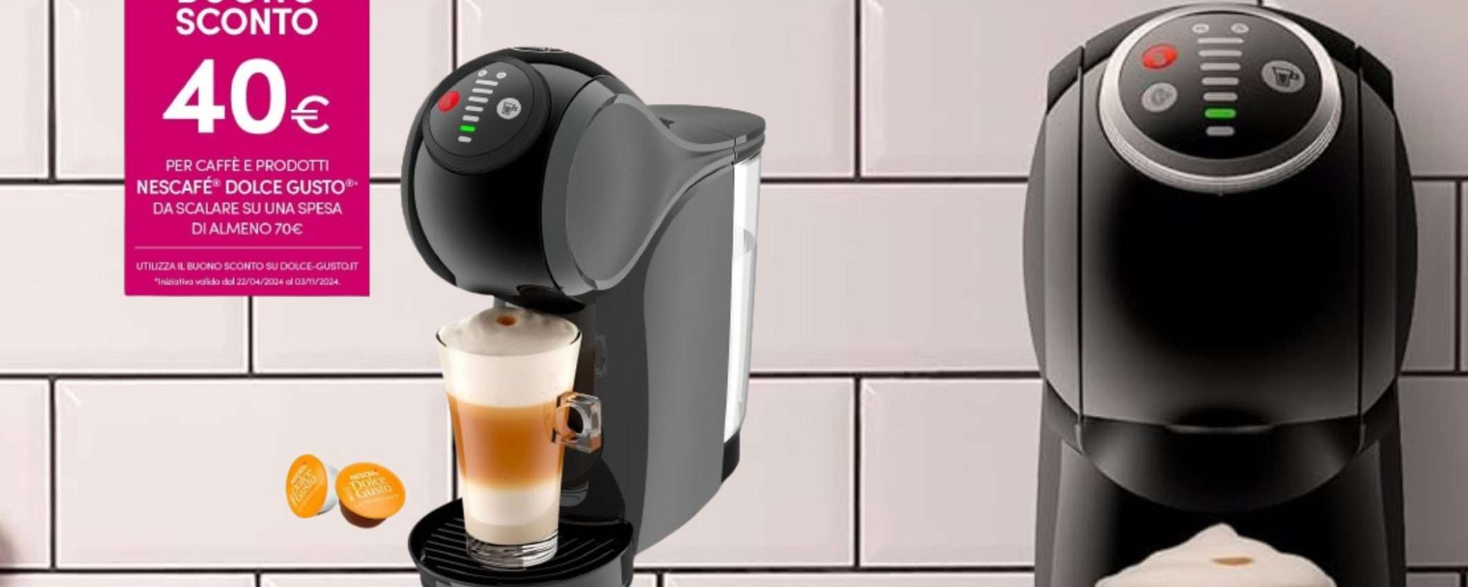 L’incredibile promozione Amazon del momento, ti permette di prenderla a 68,88€ appena invece di 89€, ma non solo! Infatti, ricevi anche un buono di 40€ da spendere per l’acquisto di prodotti sul sito ufficiale Dolce Gusto.Completa adesso l’ordine per approfittarne, se le scorte non sono già finite, ma sii veloce: è una promo così ghiotta, che durerà per pochissimo tempo.