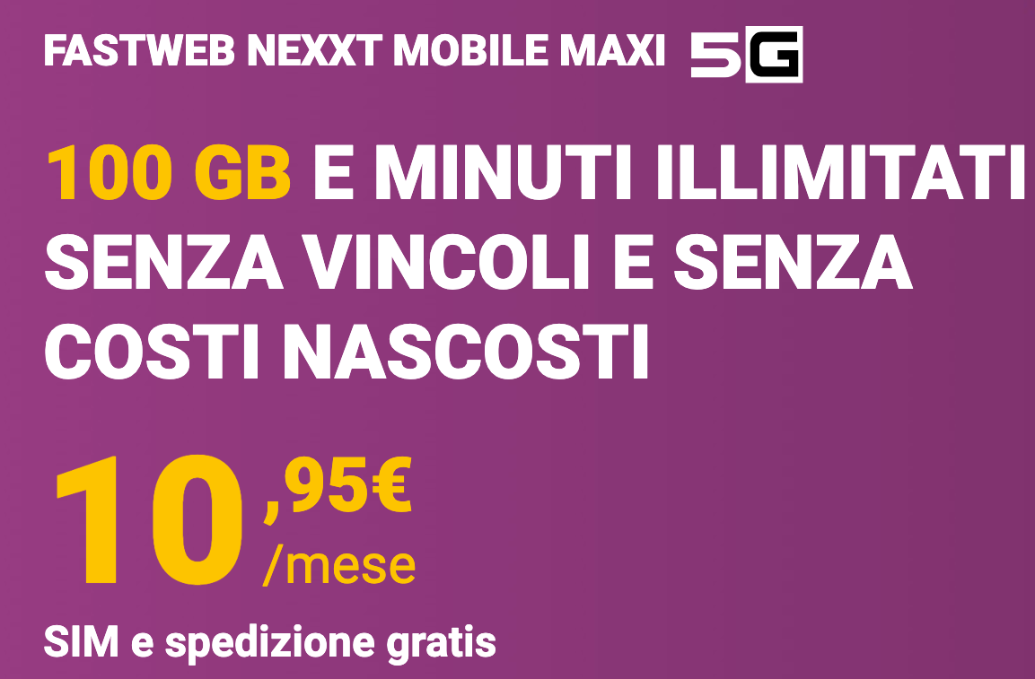 Fastweb ha lanciato NeXXt Mobile Maxi 5G una tariffa attivabile online attualmente disponibile con SIM ed entry fee completamente gratis. Oltre a quella da 7,95 euro mensili si va ad aggiungere questa nuova interessante promozione con 100GB.