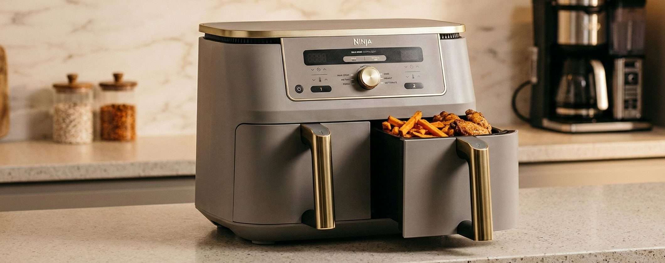 Questo elettrodomestico rappresenta un investimento ideale per chi desidera mangiare in modo più sano senza rinunciare alla croccantezza e alla velocità. La friggitrice ad aria Ninja MAX a doppia zona, caratterizzata dall’esclusivo colore Pietra Oro, è acquistabile su Amazon al prezzo di 149,99€. Ti invitiamo a finalizzare l’acquisto immediatamente per approfittare della promozione in corso prima che il prezzo torni a salire. Come sempre, la spedizione rimane rapida e gratuita per tutti gli utenti abbonati ai servizi Prime.