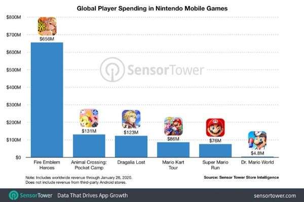 I prossimi due titoli di Nintendo in termini di fatturato guadagnato sono Animal Crossing: Pocket Camp e Dragalia Lost. I titoli Mario di Nintendo hanno visto finora hanno visto grandi download ma in termini di spesa mobile, sempre secondo l’ente Sensor Tower, sono stati decisamente infruttuosi, con entrate complessive relative all’8 e al 7 per cento con Mario Kart e Mario Run. Il peggiore di tutti? Dr. Mario World.