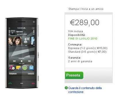 Il Nokia X6 8GB si prepara a debuttare sul mercato italiano. Il fratello minore dei Nokia X6 32GB e Nokia X6 16GB è infatti comparso sul Nokia Online Shop, da cui scopriramo il prezzo di vendita fissato da Nokia in Italia.