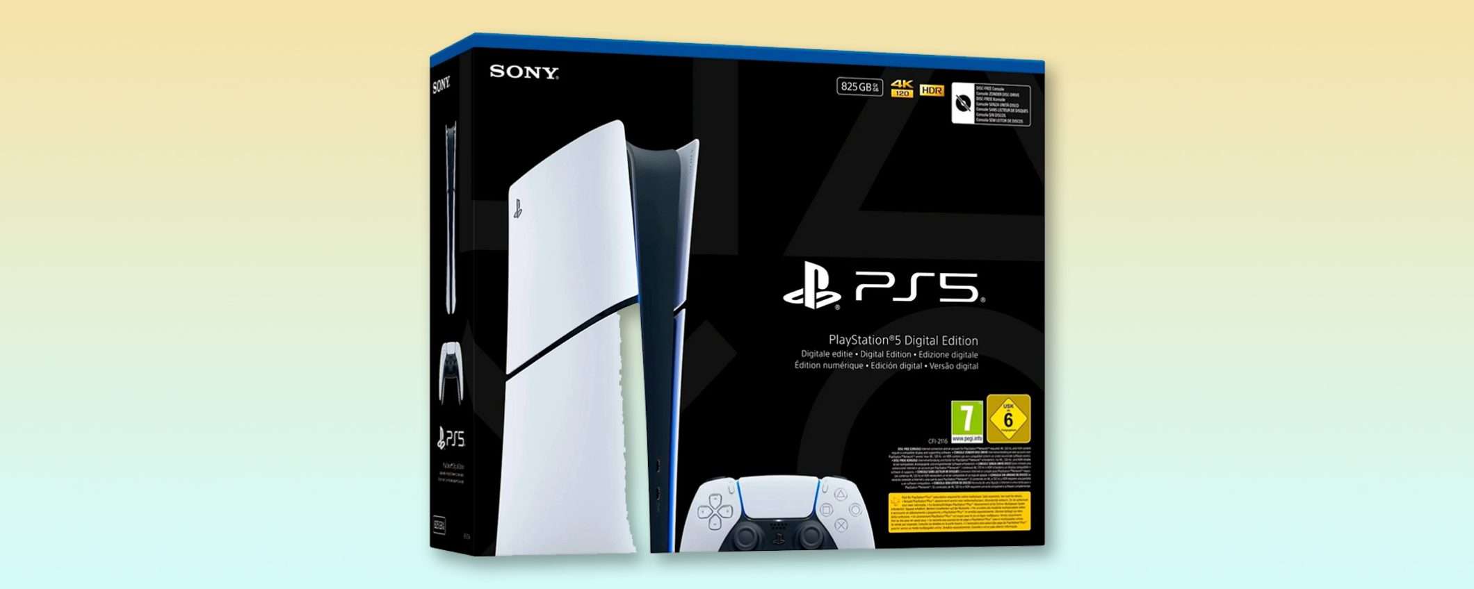 Il modello di PlayStation 5 in promozione è Digital: ciò significa che non include il lettore ottico di dischi, ma supporta esclusivamente giochi digitali, che puoi installare sull’SSD integrato da 825 GB.