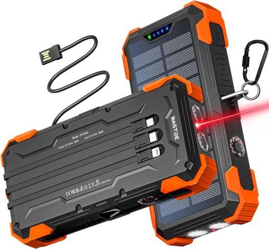 Ma le caratteristiche di questo eccezionale dispositivo non finiscono qui. Viene fornito con 4 cavi diversi integrati, che ti permettono di caricare contemporaneamente diversi dispositivi. Inoltre, ha una luce di orientamento rossa, che ti sarà utile in situazioni di emergenza o quando hai bisogno di una fonte di luce supplementare. E non dimentichiamo la sua impermeabilità, che lo rende resistente all’acqua e perfetto per l’utilizzo all’aperto.
