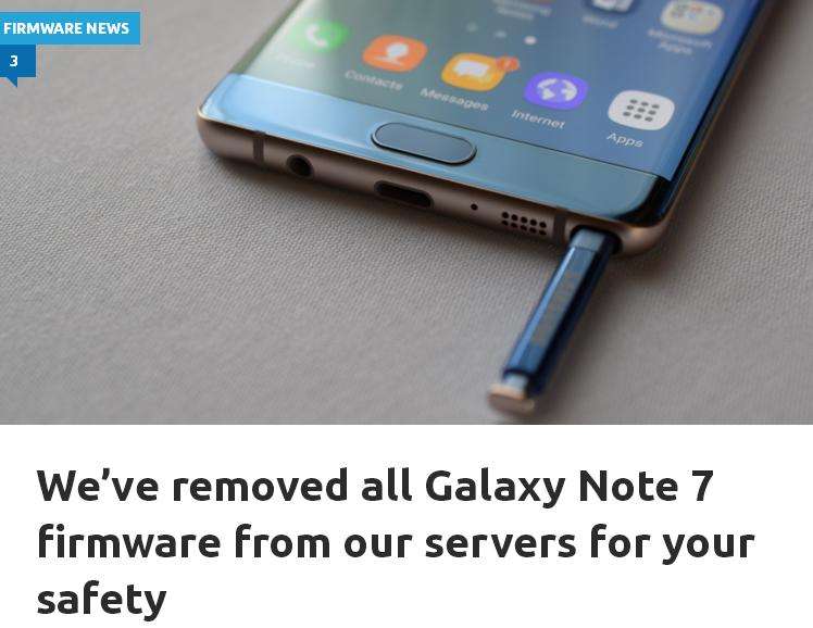 "Dal momento che la sicurezza dei nostri lettori è di fondamentale importanza per noi, abbiamo deciso di rimuovere tutti i firmware del Galaxy Note 7 dai nostri server", hanno scritto sul sito Sammobile.com. "Questo è stato fatto per indurre gli utenti a non continuare ad usare un dispositivo che il produttore ha richiamato a causa di potenziali rischi d'incendio".