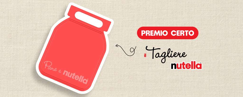 Se non dovessi vincere, avrai sempre il premio certo garantito: l’iconico tagliere rosso Nutella a forma di barattolo, un accessorio di design oltre che particolarmente utile. Verrà spedito direttamente al tuo indirizzo, inserito in fase di registrazione, senza costi aggiuntivi. Hai tempo fino al 3 novembre per richiederlo e tentare la fortuna con Nutella.