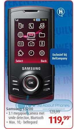 Secondo quanto riportato da AllAboutPhones.nl, il venditore olandese BelCompany commercializzerà da questa settimana il Samsung S5200 a 129,99 euro, ed è probabile che anche in Italia il prezzo di vendita sarà molto simile.