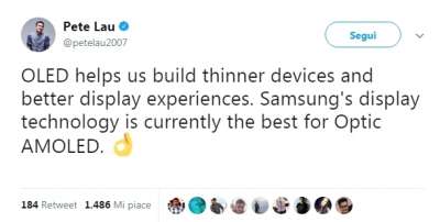 Il CEO di OnePlus, Pete Lau, ha postato su Twitter un nuovo tweet riguardante la tecnologia dei display, tweet ripreso a poca distanza dal co-fondatore della società cinese Carl Pei. Niente di specifico su attuali o futuri smartphone OnePlus, ma elogi ai pannelli di un diretto concorrente, Samsung. Nel tweet Lau parla di schermi OLED e poi afferma che la tecnologia utilizzata da Samsung per i suoi pannelli Optic AMOLED è attualmente la migliore in circolazione.
