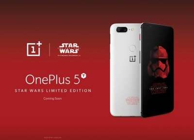 OnePlus ha presentato una versione speciale del suo nuovo OnePlus 5T, la Star Wars Edition. Il device è stato presentato senza troppi clamori in India, in occasione di un evento Comic Con sponsorizzato anche da OnePlus. Come si può vedere dalla foto, questa edizione speciale ha un pannello posteriore bianco con inciso il logo Star Wars. Anche il pulsante di accensione del telefono è rosso, mentre l’interfaccia presenterà vari effetti e sfondi di Star Wars.