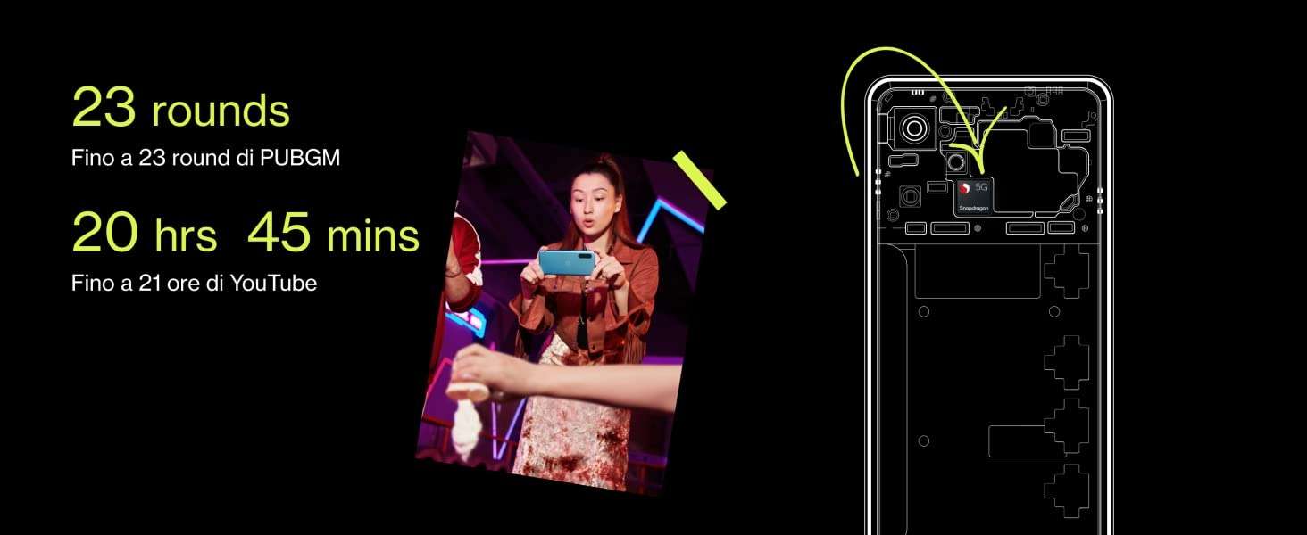 L’asso nella manica di questo bellissimo smartphone è sicuramente la batteria gigante da 5000 mAh che ti permetterà di vedere fino a 21 ore di video, di giocare o di navigare su internet. E grazie alla ricarica super veloce da 33W in pochi minuti il tuo OePlus si sarà già ripreso almeno del 50%.