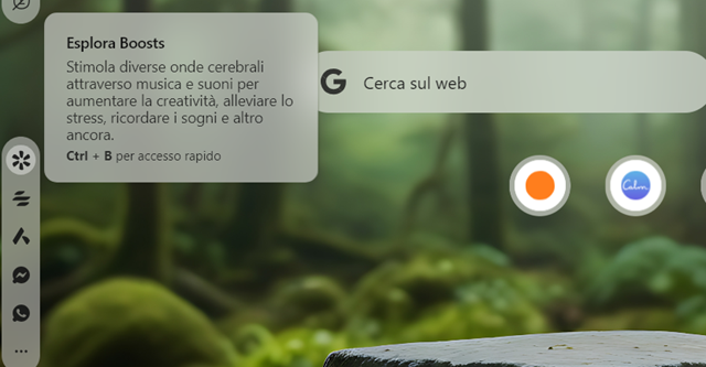 Nel caso si scelga di procedere con la configurazione immediata, sarà necessario personalizzare vari aspetti del browser, come lo stile e lo sfondo. Una volta completata la configurazione, o se si opta per “Lo farò dopo”, si accede alla pagina iniziale del browser, che presenta un’interfaccia pulita e semplice, ma al contempo ricca di icone che consentono di navigare tra le diverse sezioni. A fare la differenza sono sicuramente le funzionalità presenti nella parte sinistra dello schermo, che offrono interessanti modalità per ritrovare la concentrazione e favorire momenti di relax, come esplora Boosts, fai una pausa o la modalità Aria.