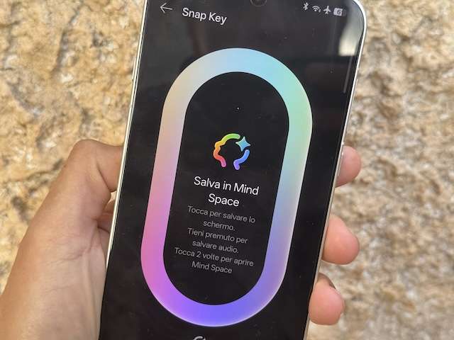 Sul profilo sinistro sorge invece lo “Snap Key”. Si tratta di un tasto altamente personalizzabile, che permette di accedere rapidamente a quello che si preferisce. Io l’ho lasciato impostato su “AI Mind Space”, lo spazio personale con profonda integrazione con Gemini (l’AI di Google), per comodità, ma la scelta è ampia.