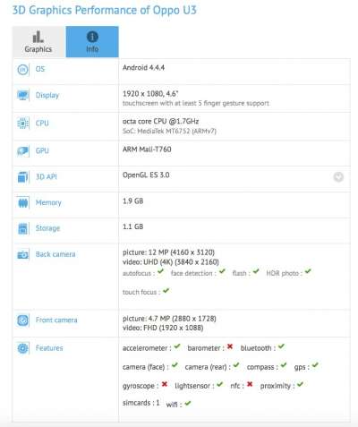 Secondo quanto riportato dal benchmark GFXBench, Oppo starebbe lavorando per lanciare in un prossimo futuro un nuovo smartphone denominato “U3”.